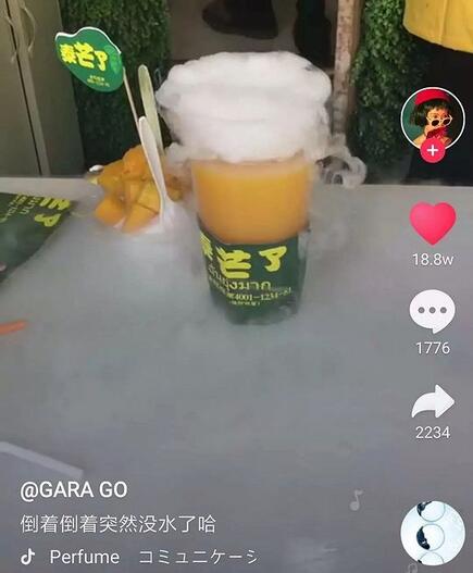 西安一家店在水果茶里加入了干冰,把一杯冒著“仙氣”的茶遞到顧客手中,秒殺其他品牌,還能引起圍觀排隊。