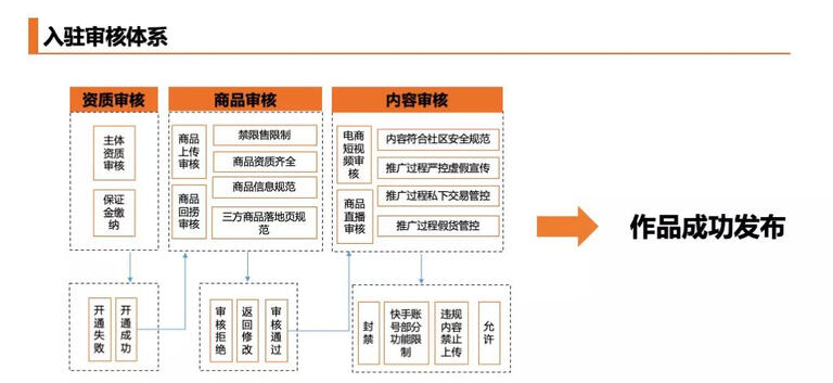 從上圖來看,快手電商的入駐審核體系除了和電商平臺一樣都有資質(zhì)和商品審核之外,在內(nèi)容審核方面也在持續(xù)強(qiáng)化。